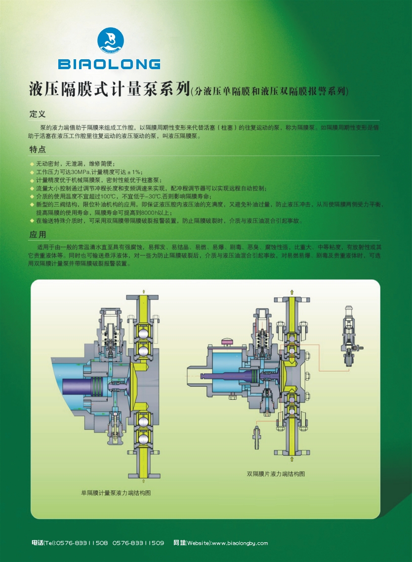 液壓隔膜(mó)計量泵也叫(jiào)柱塞隔膜計(ji)量泵,是結合(he)柱塞式計量(liang)📱泵和隔膜式(shì)計量泵的特(te)點而設計的(de)一種計量泵(beng)。該計量泵♋與(yǔ)被計量介質(zhi)介質接觸部(bù)分為隔膜,而(ér)驅動部分為(wéi)液壓柱塞。由(you)于隔膜根據(ju)被計量介質(zhì)🏃🏻♂️的不同可選(xuan)用不同的材(cai)質,如海波隆(long)(CSM)、氟🈲化橡膠(FPM)、泰(tài)氟隆(PTFE)等,而液(yè)壓驅動可實(shí)現高壓計量(liàng)的🌍需要,所以(yǐ)柱塞♉隔膜計(ji)量泵的使用(yòng)領域和工礦(kuàng)壓力大大提(ti)高。